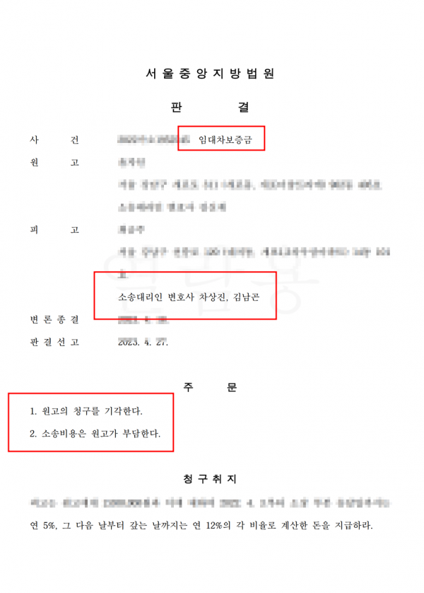 법원은 이러한 주장을 받아들여 원고에게 보증금을 지급하고 소송비용도 원고가 모두 부담하는 것으로 판결을 하였습니다.