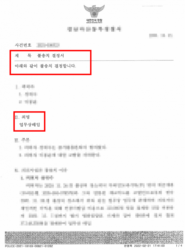 C경찰서는 비컴의 차상진 변호사가 제출한 증거 및 주장을 받아들여 의뢰인 A씨에 대해 '혐의없음(증거불충분)' 불송치 결정을 내렸습니다. 특히, A씨가 회사 자금을 개인적인 용도로 사용했더라도 이는 업무상 지출로 볼 여지가 있으며, A씨에게 업무상 배임이나 불법 영득 의사가 있었다고 보기 어렵다는 점을 명확히 하였습니다.