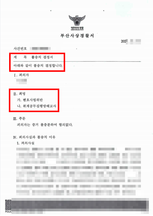 수사기관은 비컴의 차상진 변호사가 제출한 법리적 근거와 증거분석 자료를 받아들여,의뢰인 박 모 씨에 대하여 ‘혐의없음(증거불충분)’ 불송치 결정을 내렸습니다.
