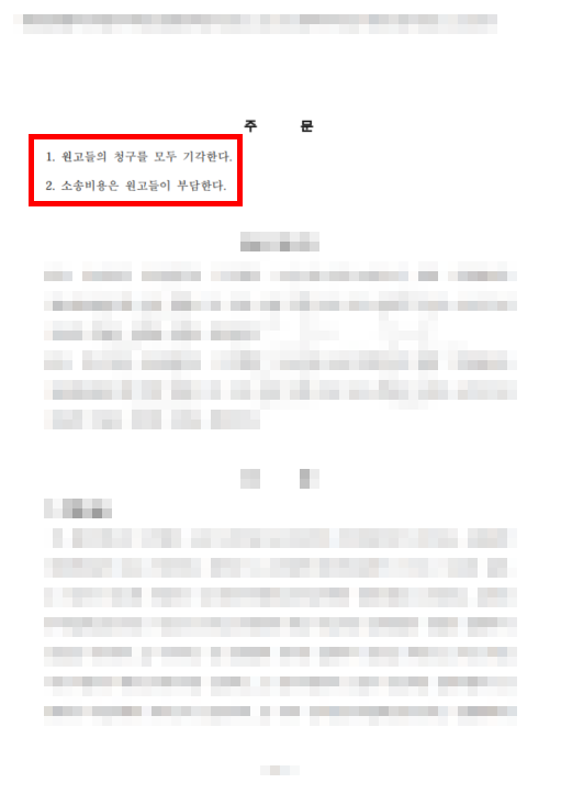 법원은 피고와 비컴 차상진 변호사의 주장대로 원고들의 청구를 전부 기각하였습니다.