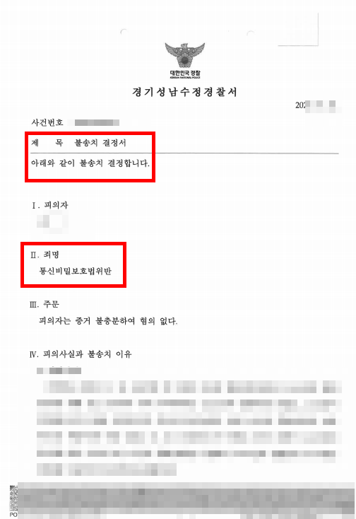 [형사] 통신비밀보호법위반 불송치 처분 사건